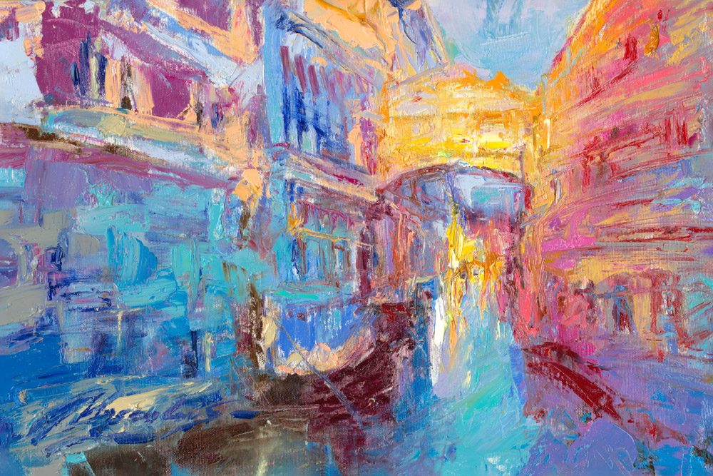 Drawing on his classical training at the Penza Art College and years of exhibiting across Europe and Israel, Sergei Moskalev has developed a signature style that bridges old-world mastery with contemporary expression. His Venice paintings transform gondolas, the Grand Canal, St. Mark’s Square, and Santa Maria della Salute into luminous, emotionally charged compositions. Each piece in this collection invites viewers to experience romance, mystery, and timeless beauty through Moskalev’s distinctive lens.